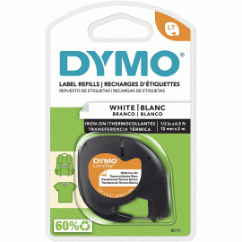 DYMO Label Tape 10697 / 91200 - LetraTag, Black on White Paper 12mm x 4m (Pack of 2)