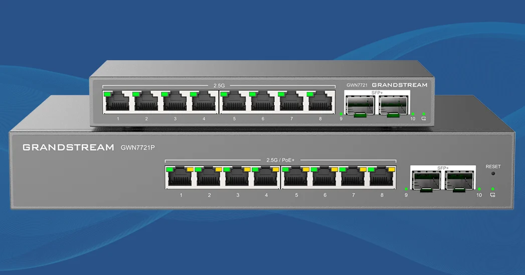 Grandstream, connecting the world with award-winning unified communications and networking solutions since 2002, has released new managed network switches. The GWN7721 and GWN7721P are 10-port Layer 2 Lite Managed Switches equipped with 8 2.5-Gigabit Ethernet ports and 2 10-Gigabit SFP+ ports to all...